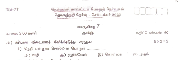 7th Quarterly Exam | Term-1 Question Paper 2023 : Kalvi Nesan