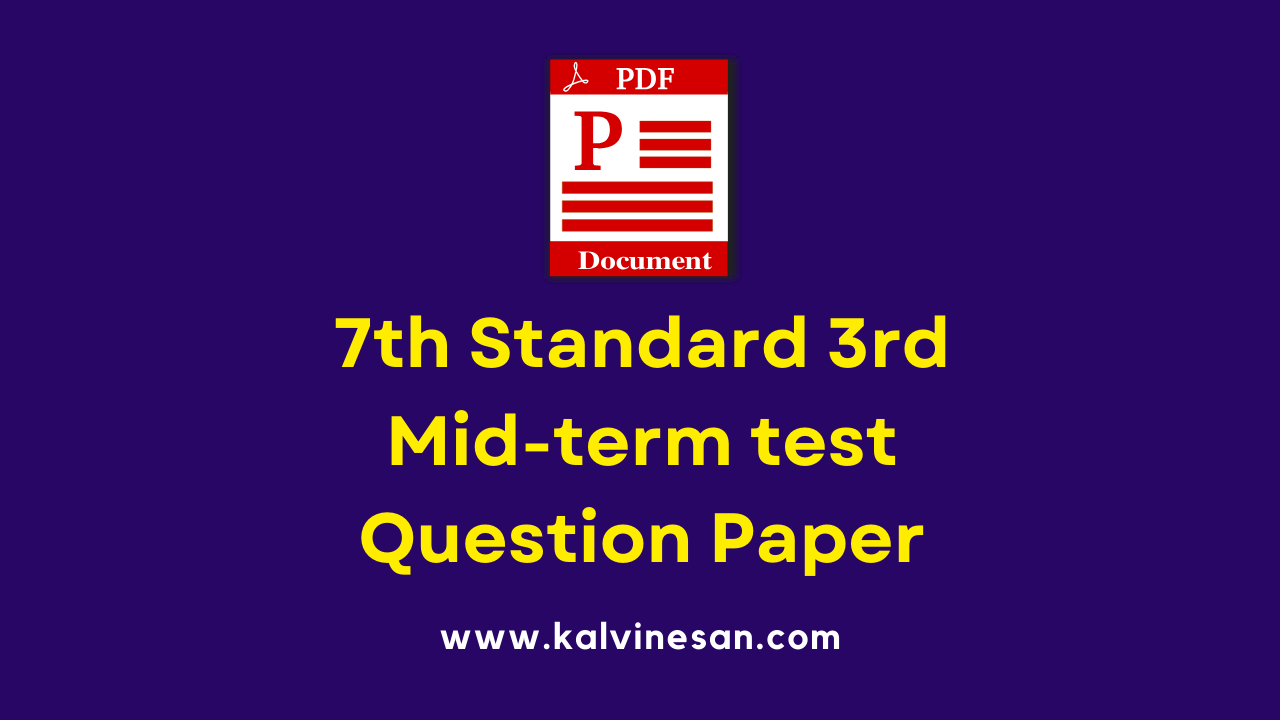 7th Standard 3rd Mid-term test Question Paper 2024 : Kalvi Nesan