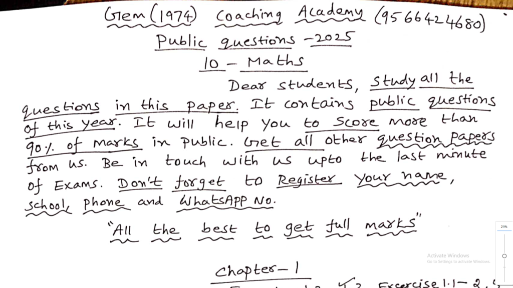 10th Maths Public Exam Important Questions 2025 : Kalvi Nesan