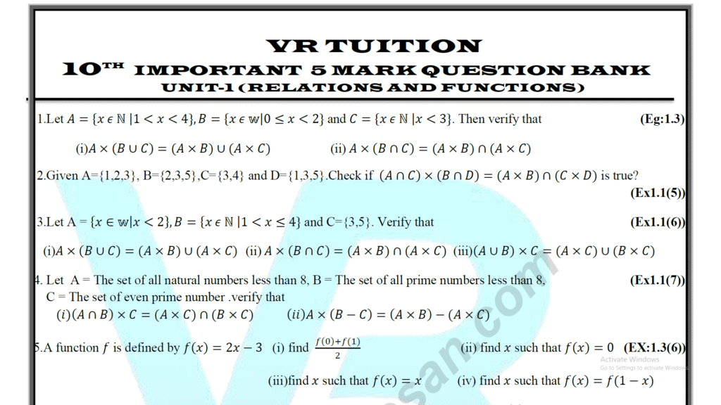 10th Maths Unit - 1 Important Five Marks Questions English Medium 2025 ...
