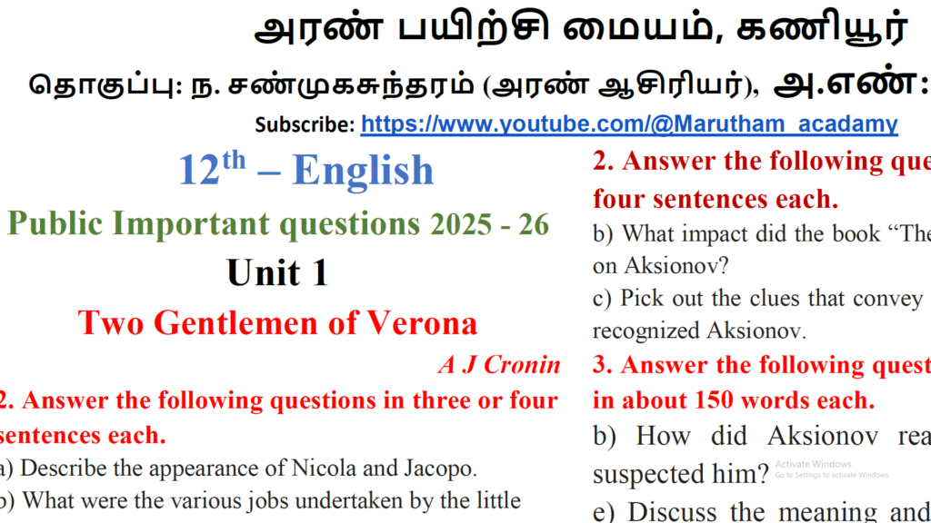 12th English Public Exam Important Questions 2025 - 26 : Kalvi Nesan