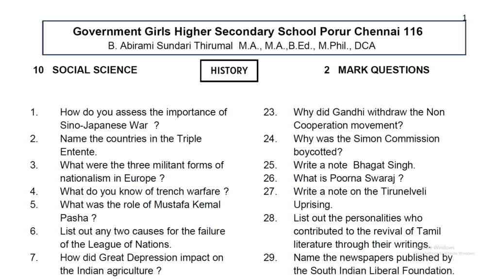 10th Social Science Two Marks Full Questions TM & EM 2025 - 26 : Kalvi ...