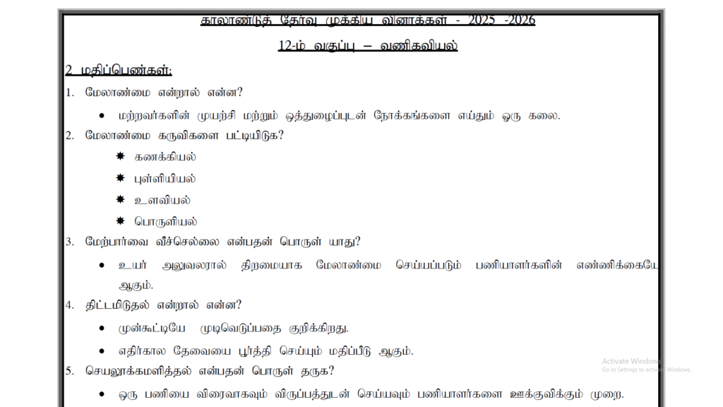12th Commerce Quarterly Exam Important Questions Tamil Medium 2025 ...