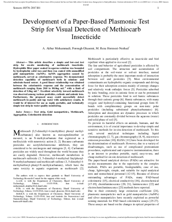 (PDF) Development of Colorimetric Paper Sensor for Pesticide Detection ...
