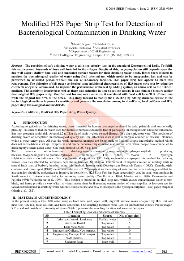 (PDF) Modified H2S Paper Strip Test for Detection of Bacteriological ...