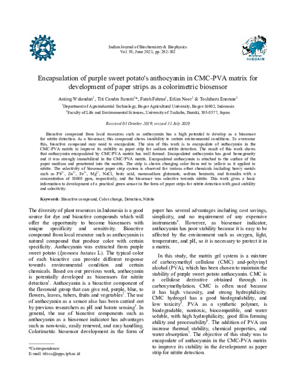 (PDF) Encapsulation of purple sweet potato's anthocyanin in CMC-PVA ...