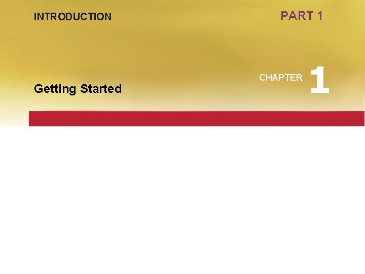 INTRODUCTION Getting Started PART 1 CHAPTER 1 CHAPTER