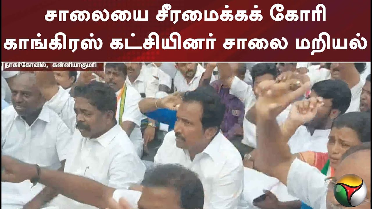 சாலையை சீரமைக்கக் கோரி காங்கிரஸ் கட்சியினர் சாலை மறியல் - YouTube