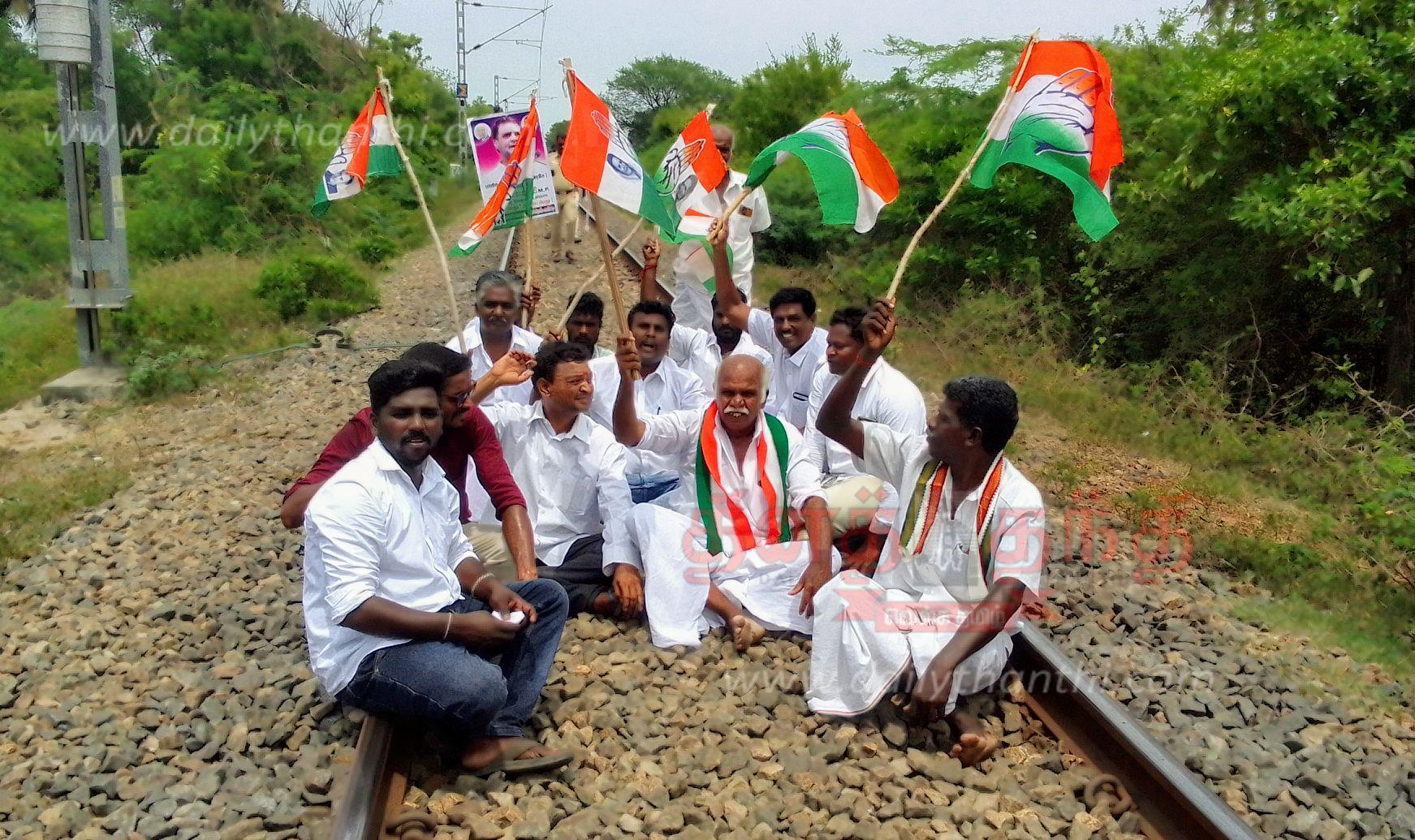 Congress party rail strike at 3 places | 3 இடங்களில் காங்கிரஸ் ...