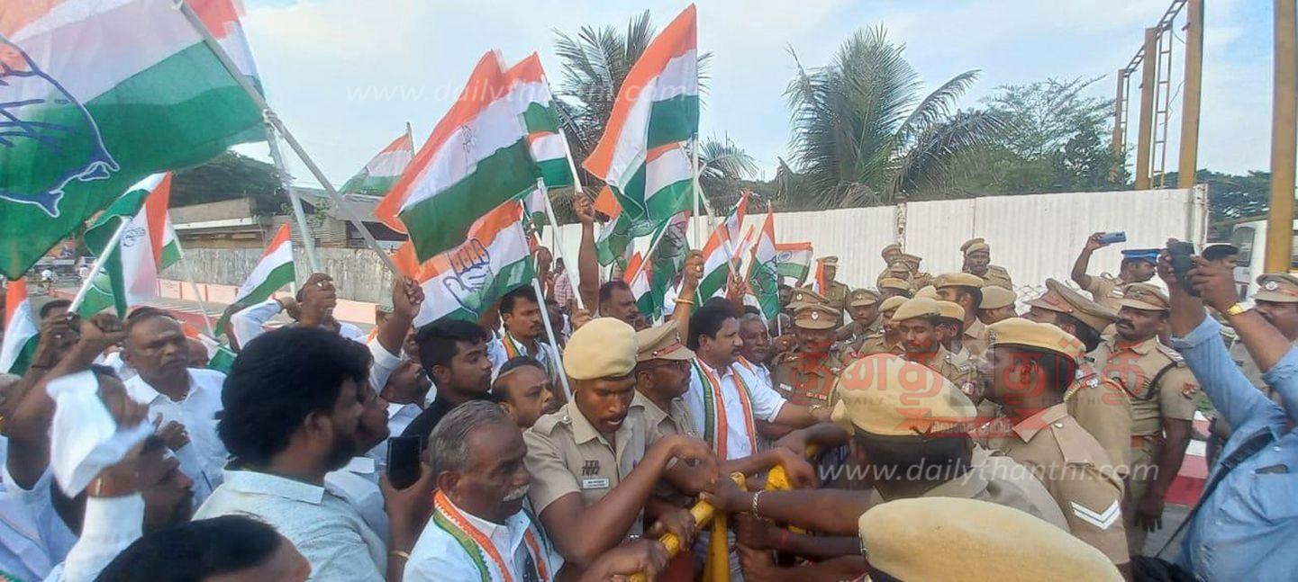 Congress party blocked road at 3 places in Kumari | ராகுல்காந்தியின் ...