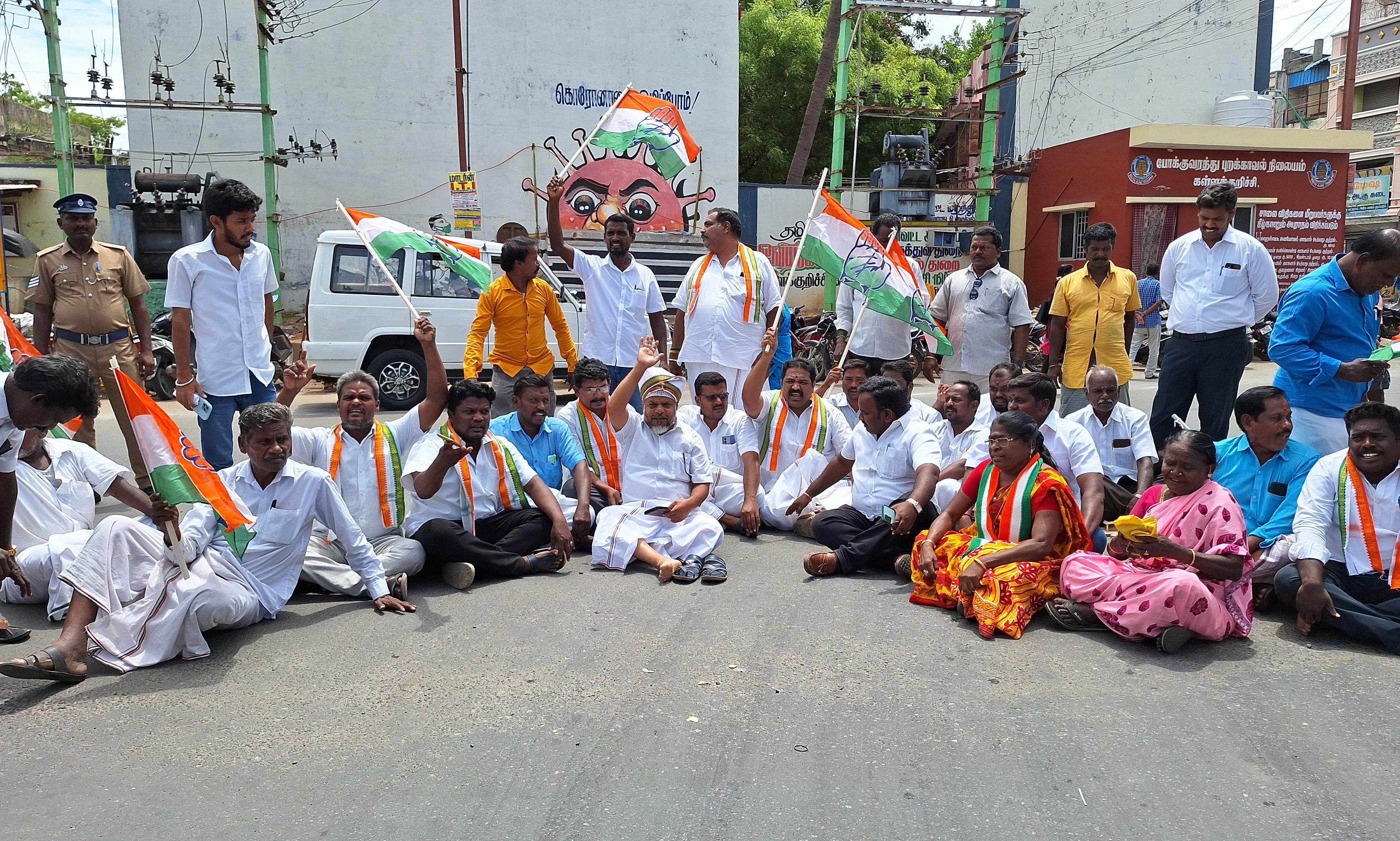 Congress party protest, road blockade | காங்கிரஸ் கட்சியினர் ...
