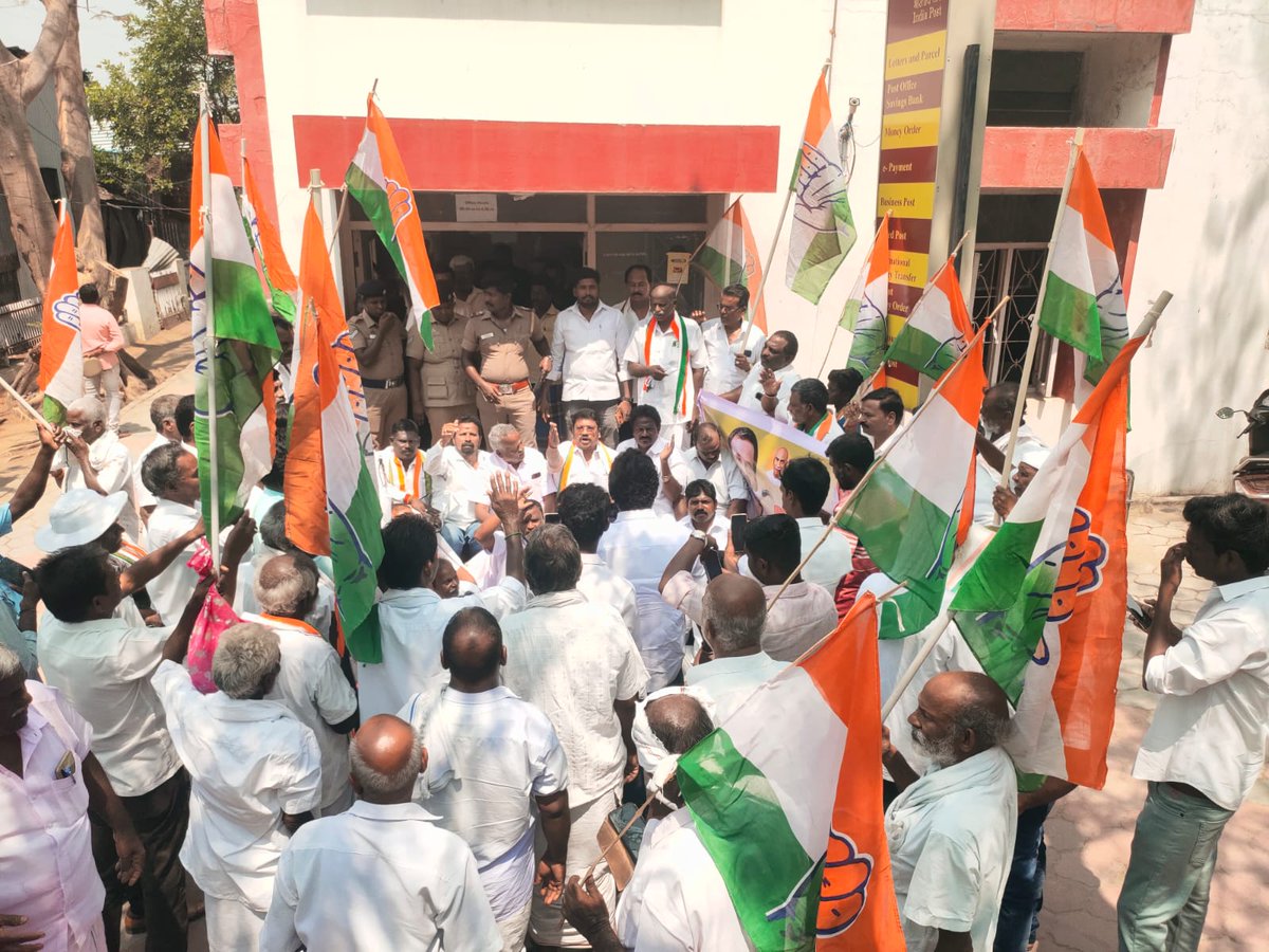 தபால் நிலையத்திற்கு பூட்டு போடச் சென்ற காங்கிரஸ் கட்சியினர்