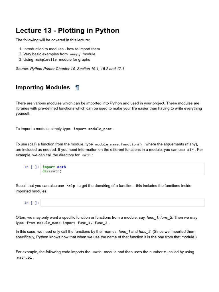 Lecture 13 - Plotting in Python | PDF | Matrix (Mathematics) | Python ...