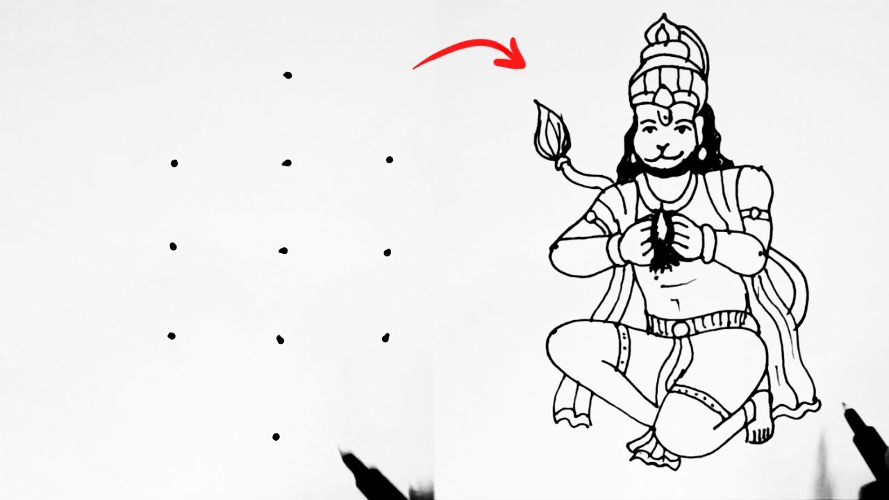 Hanuman Dots drawing easy and simple | हनुमान ड्राइंग - YouTube