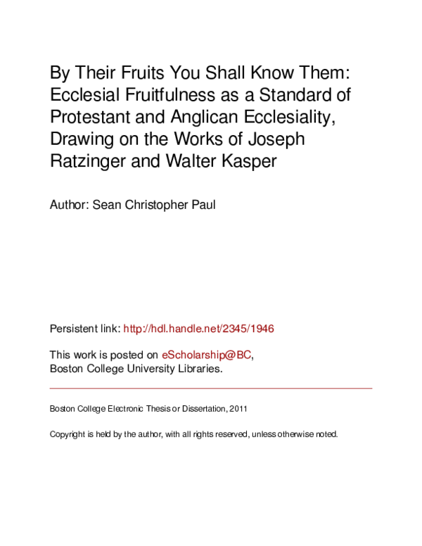 (PDF) By their fruits you shall know them: Ecclesial fruitfulness as a ...