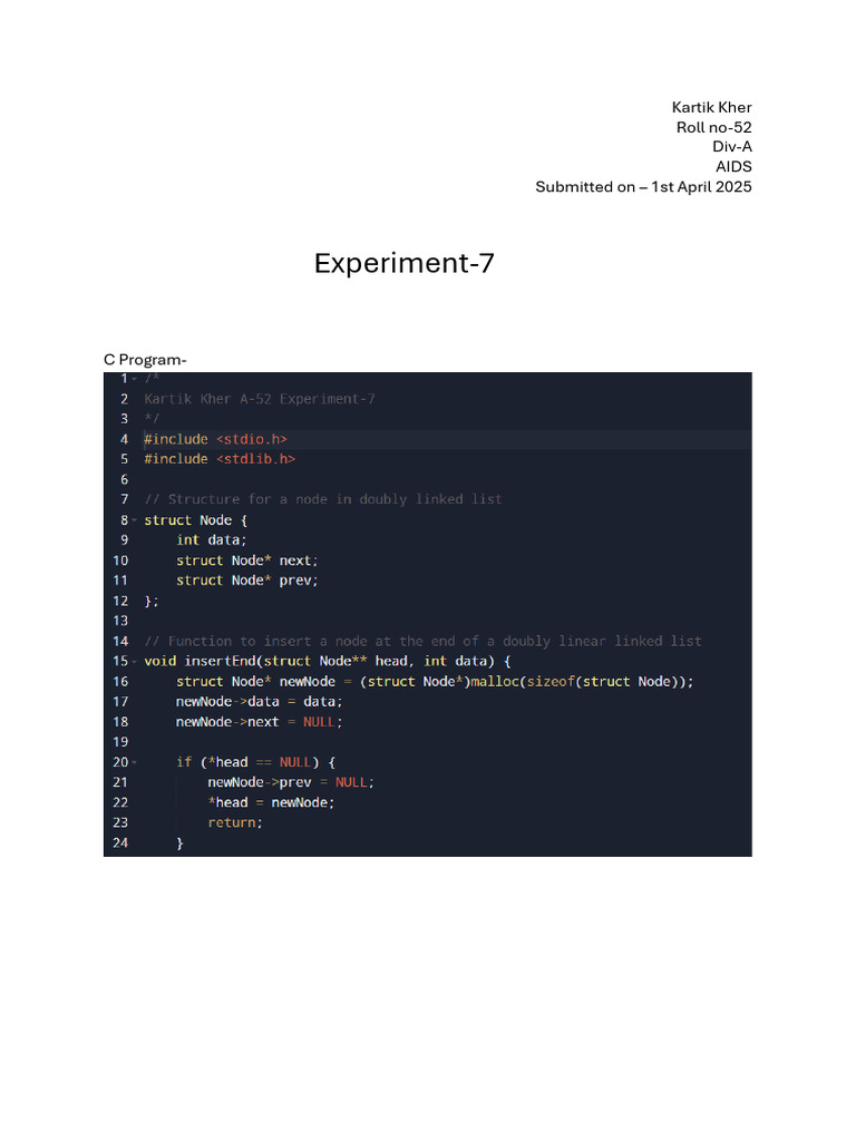 Data Structures and Analysis Experiment - EXPERIMENT 05 PROGRAM TO ...