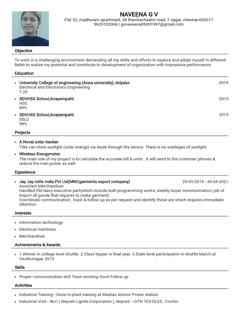 Naveena G V - Electrical Engineer CV | PDF | Business