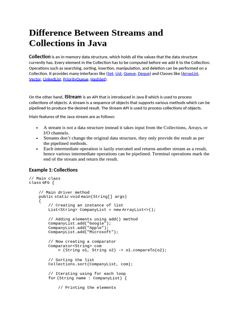 Difference Between Streams and Collections in Java | PDF | Computer ...