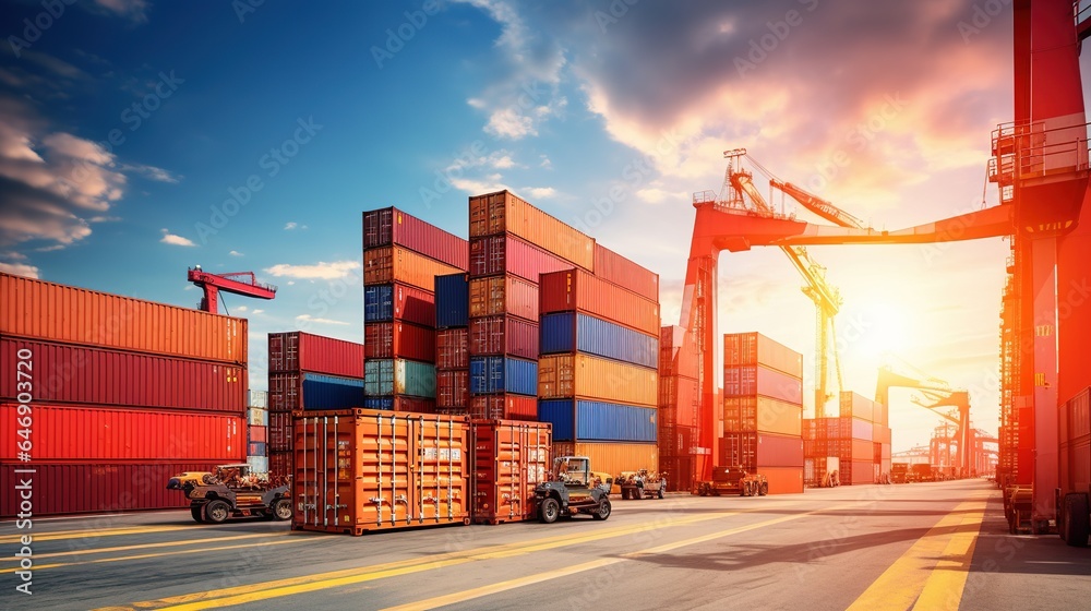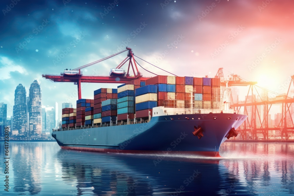 Premium AI Image | Container cargo freight ship during discharging at ...