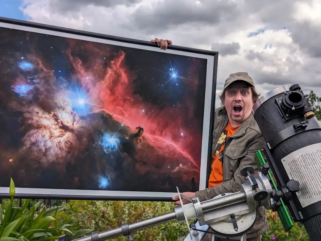 Based on this image's title: “Photographing the deep space object known as the Horsehead Nebula, a ...”