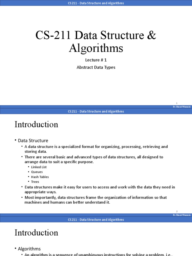 CS-211 Data Structure & Algorithms - Lecture1 | PDF | Data Type | Data ...