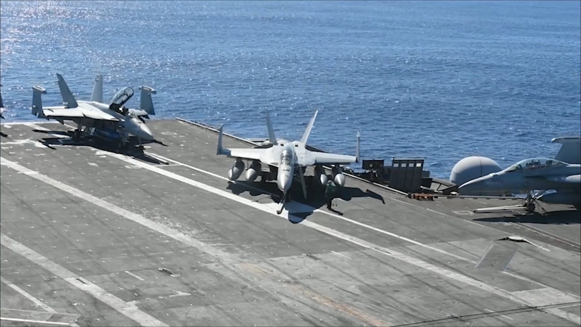 US sailors prepare flight deck for air operations on aircraft carrier