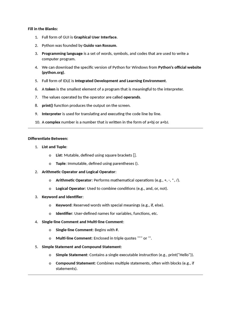 grade 9 Python Programming - Important _ Previously Asked Questions ...