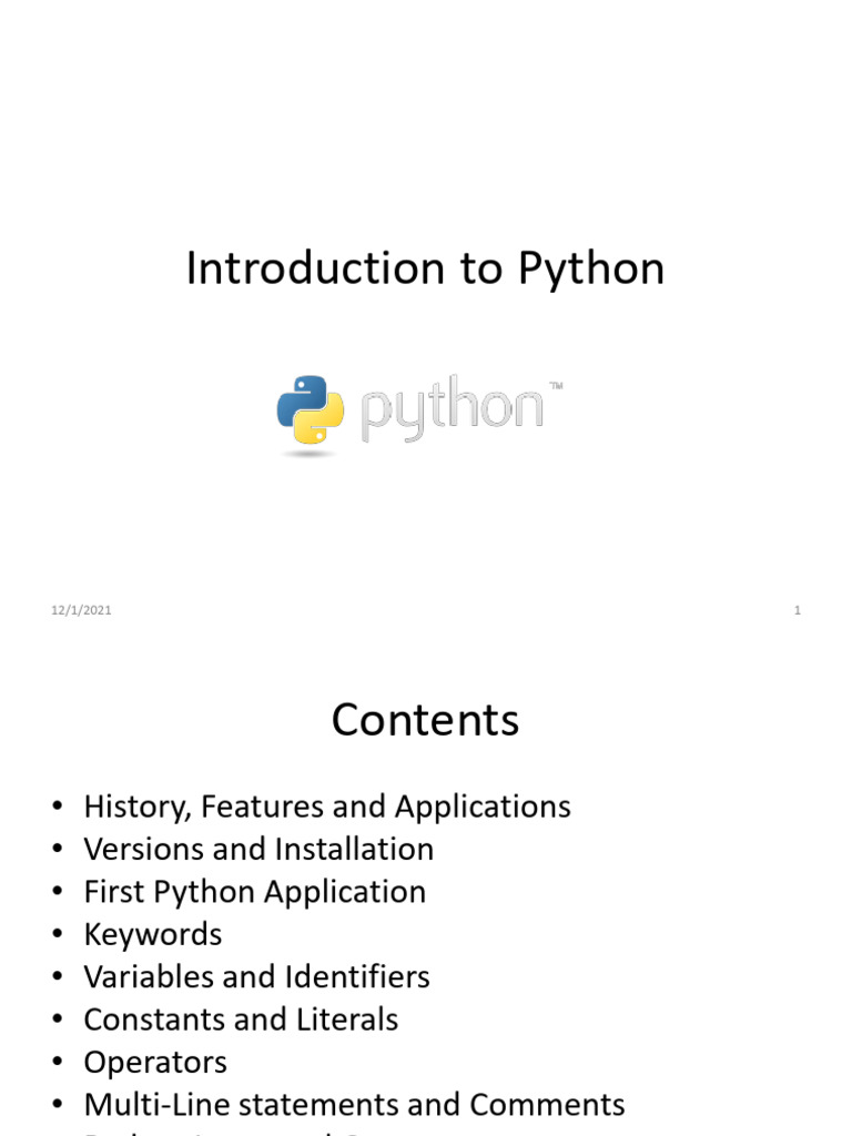 Based on this image's title: “1 - Introduction To Python | PDF | Variable (Computer Science) | Python ...”