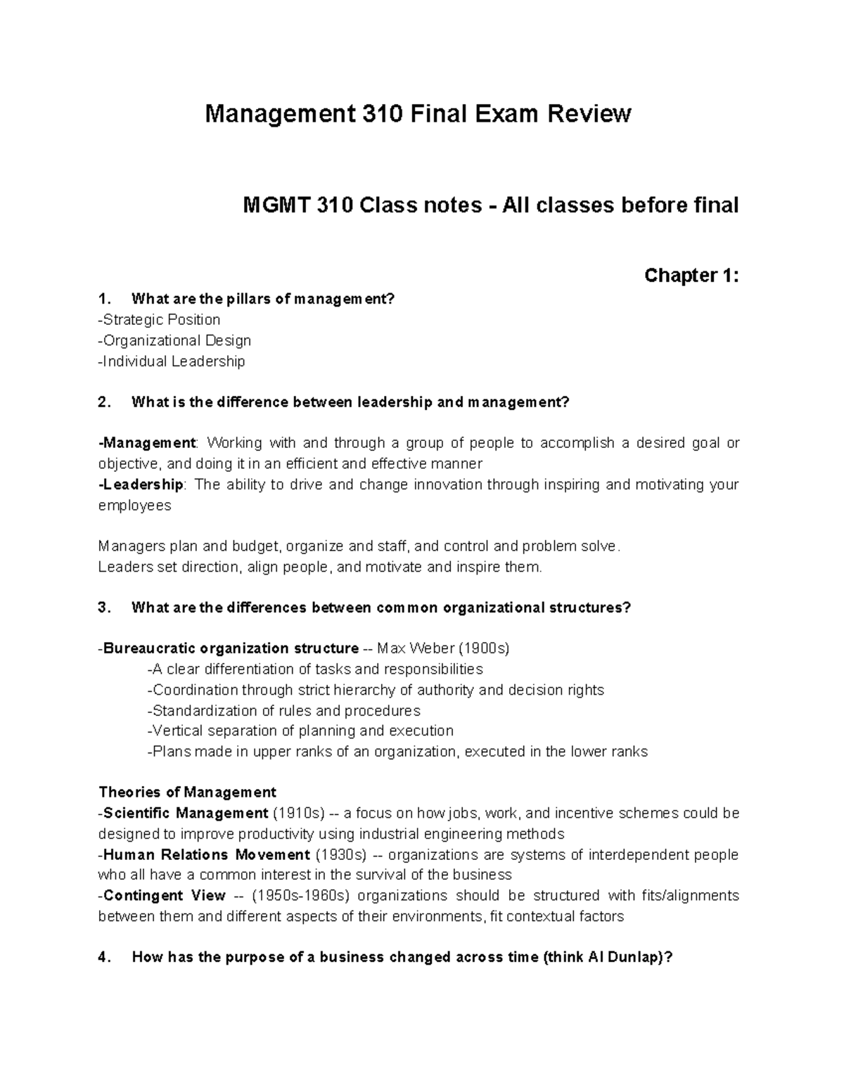 MGMT 310 FULL Notes - Management 310 Final Exam Review MGMT 310 Class ...