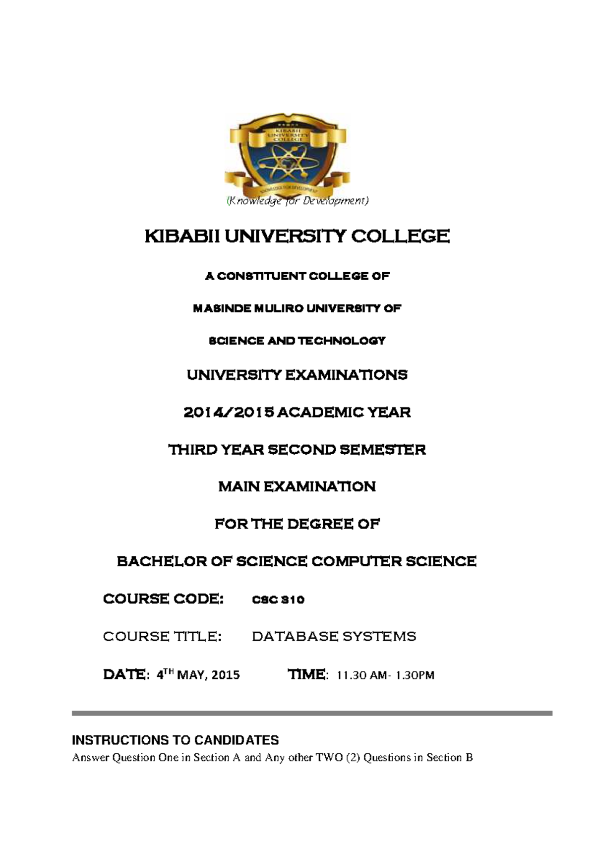 CSC 310 Final Exam: Database Systems Overview and Questions - Studocu