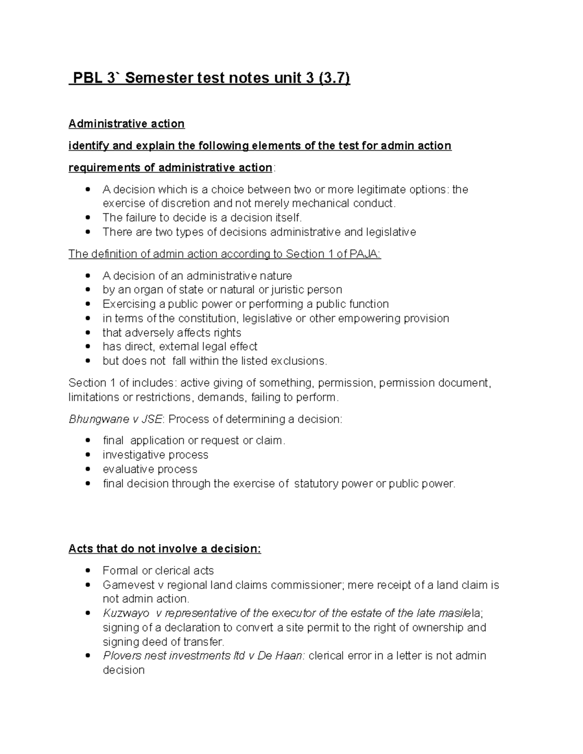 PBL 310 Final Exam Notes: Administrative Action & PAJA Elements - Studocu