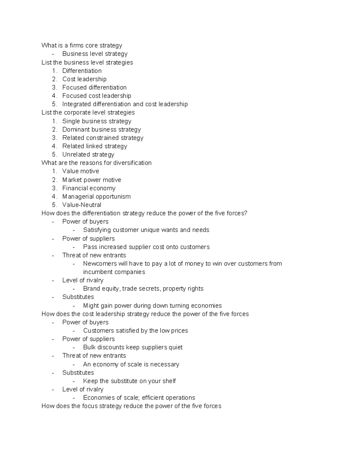 Business-Level & Corporate Strategies: Analysis for MGT 310 Final Exam ...