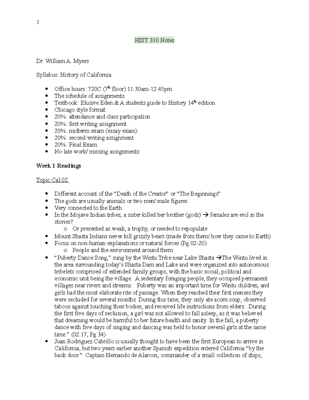 HIST 310 Final Exam Notes: History of California Overview - Studocu