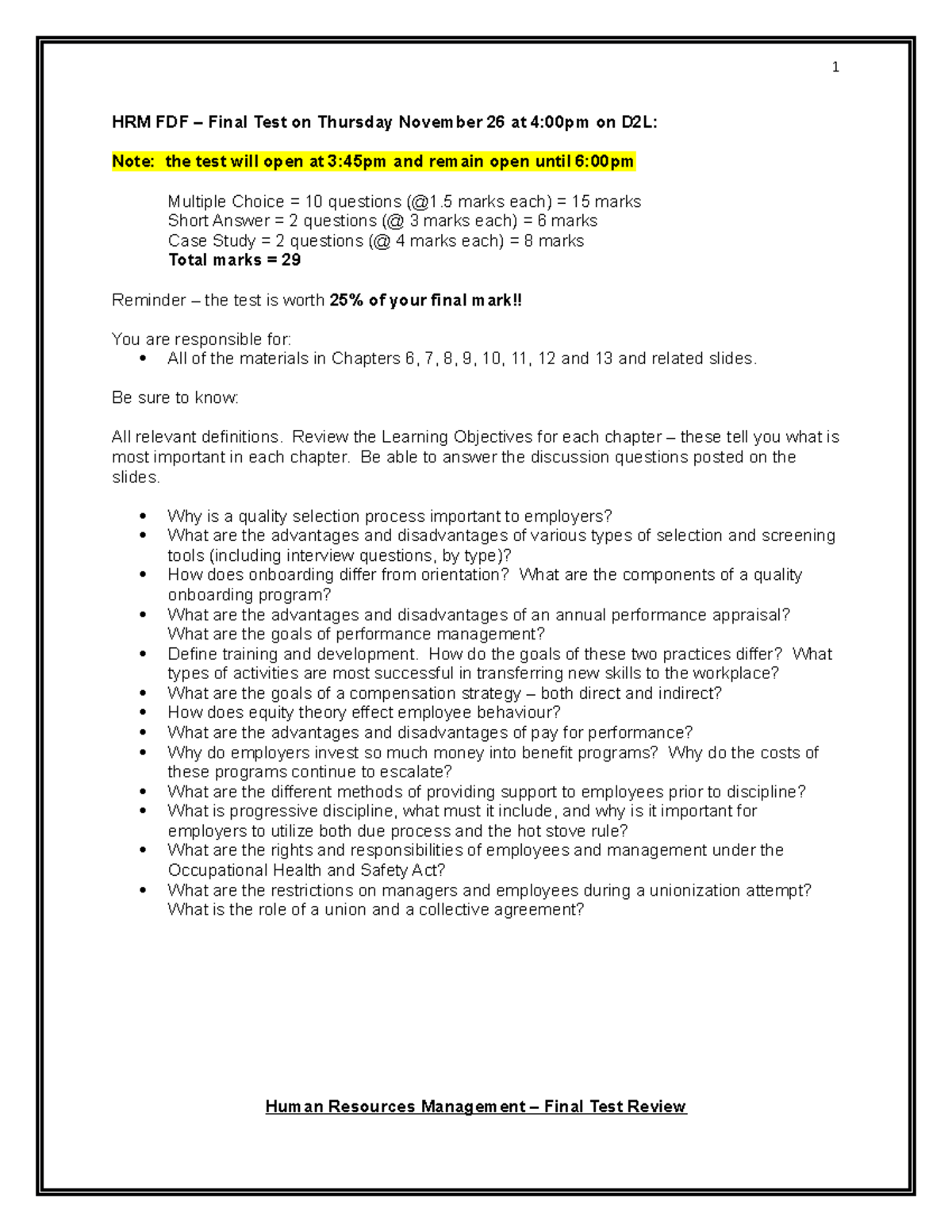 HRM FDF - Final Exam Review Notes: Key Concepts and Strategies - Studocu