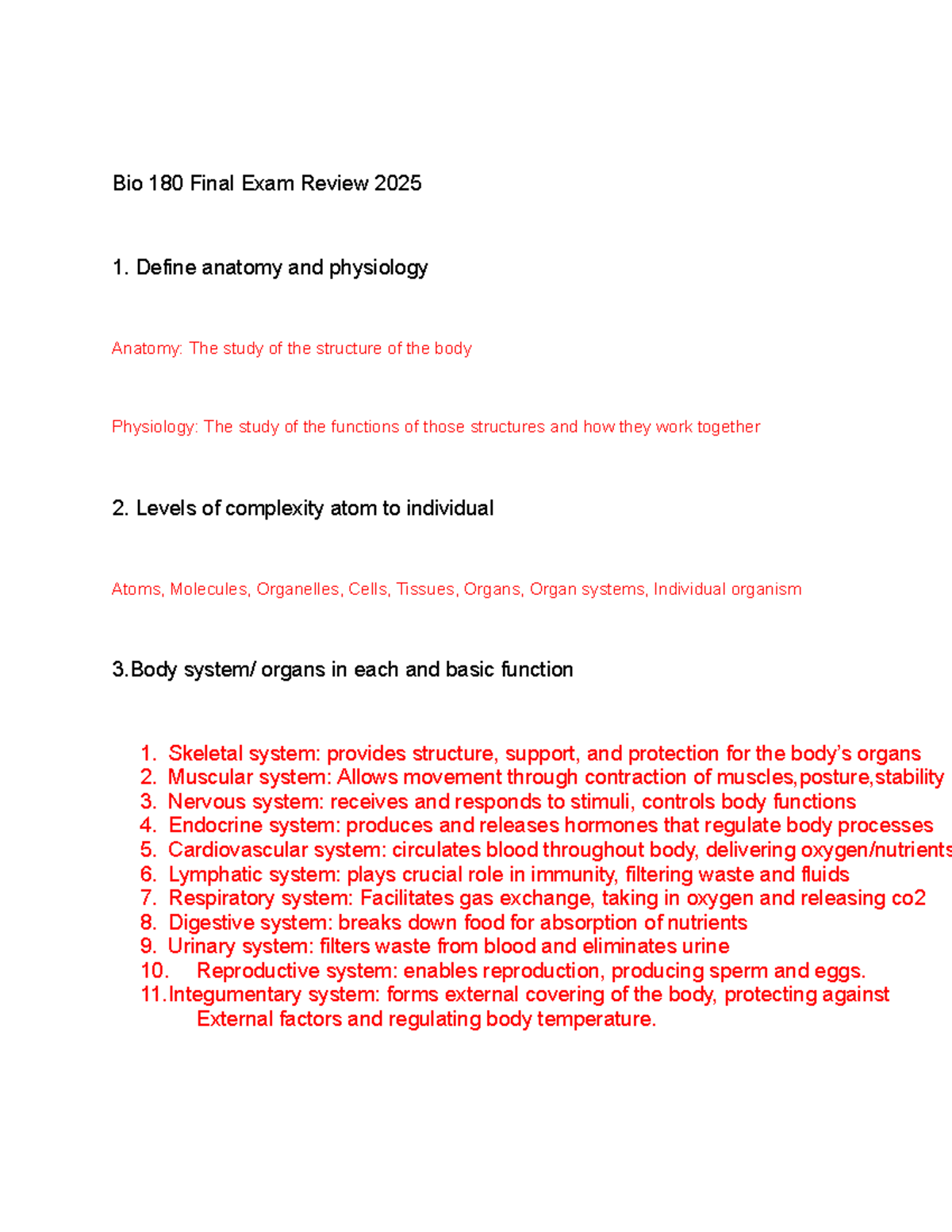 Bio 180 Final Exam Review Notes: Key Concepts for 2025 - Studocu