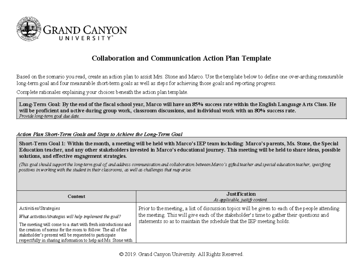SPD-310 Final Exam Action Plan for Collaboration & Communication - Studocu