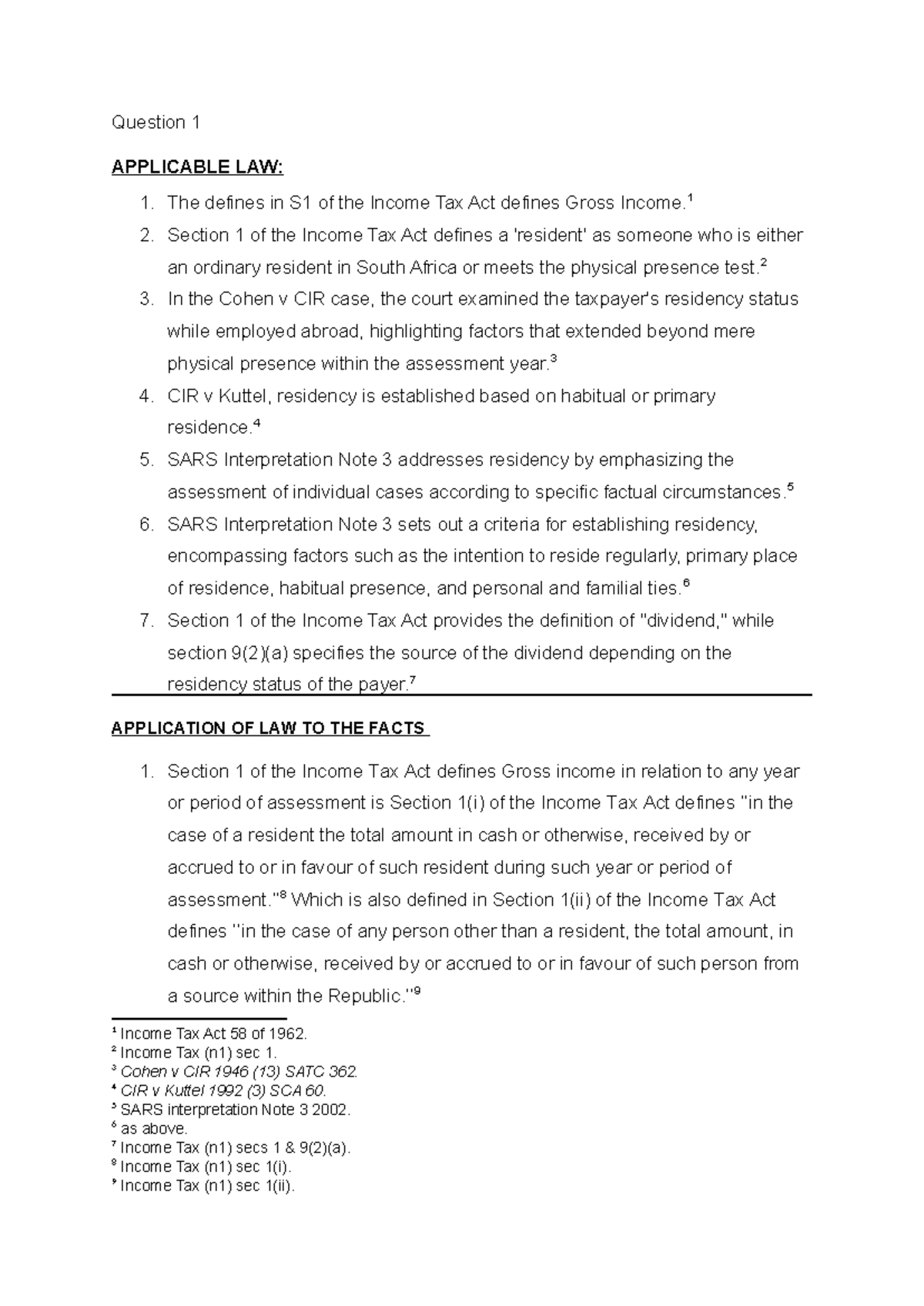 BLR 310 Final Exam: Income Tax Act Case Law Analysis - Studocu