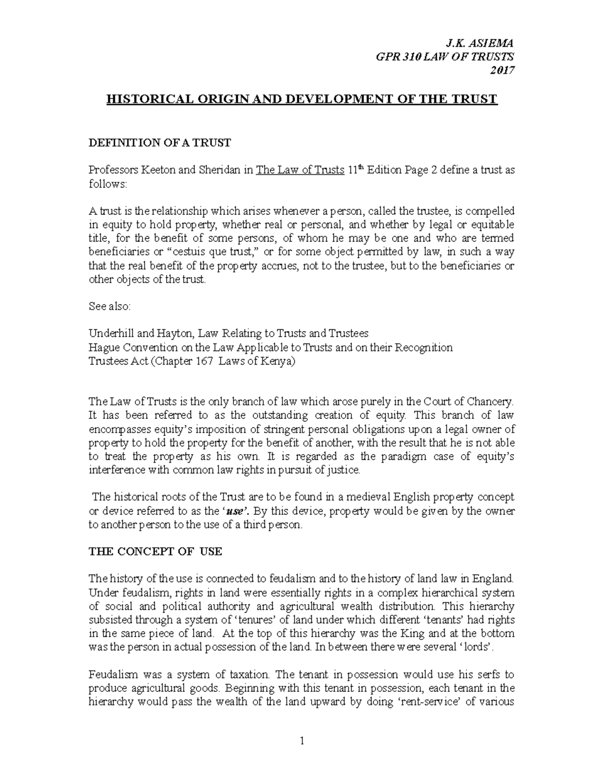 GPR 310 Final Exam Notes: Historical Origin of the Trust - Studocu