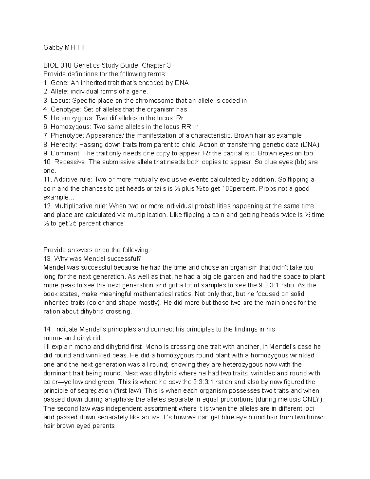 BIOL 310 Final Exam Study Guide: Genetics & Mendelian Principles - Studocu