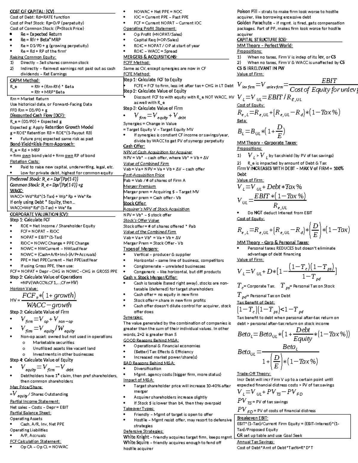 AFF 310 Final Exam Cheat Sheet: Cost of Capital & Valuation - Studocu
