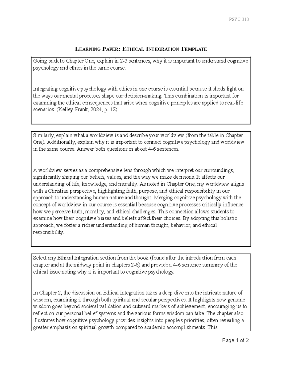 PSYC 310 Final Exam Learning Paper: Ethical Integration Insights - Studocu