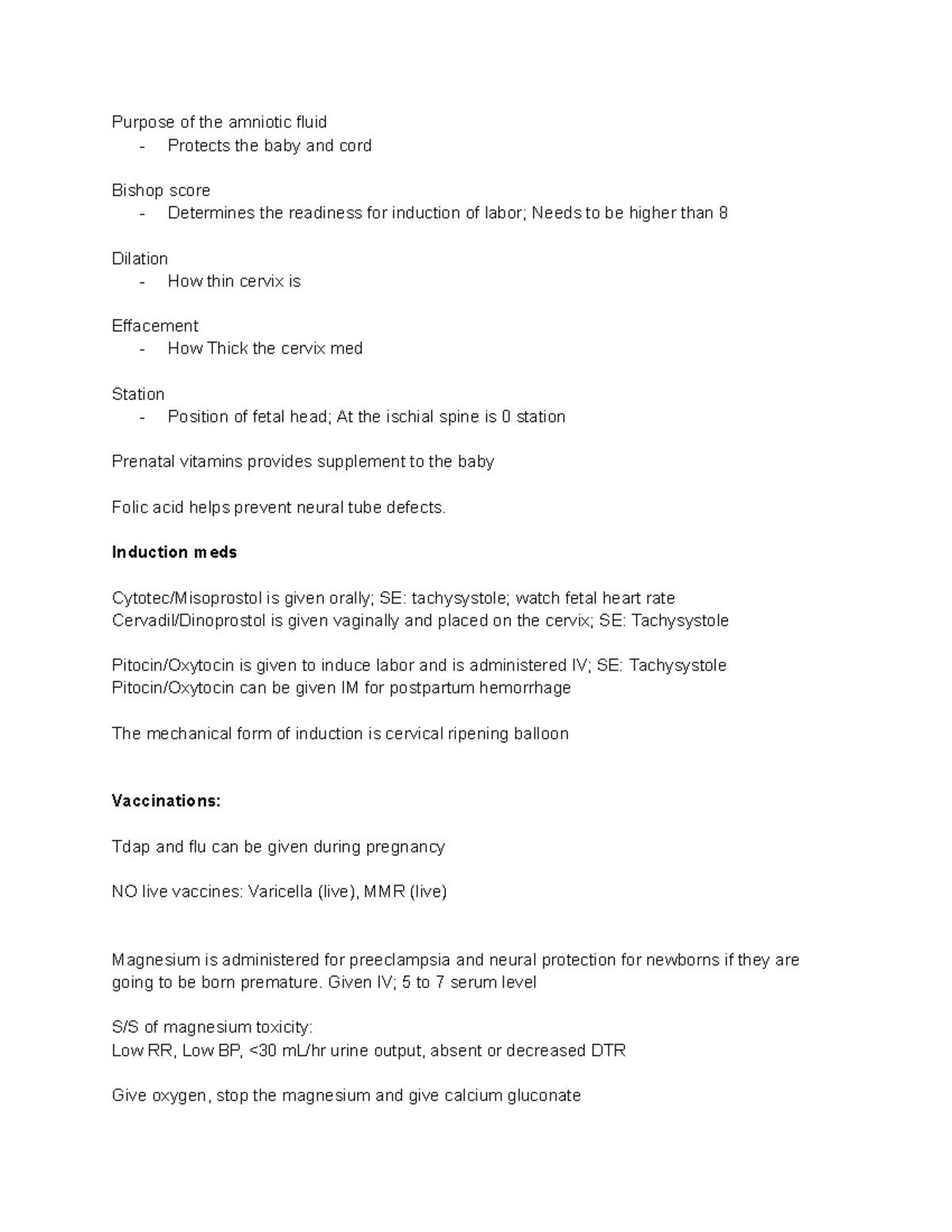 OB Final Exam Review Notes: Key Concepts and Interventions - Studocu