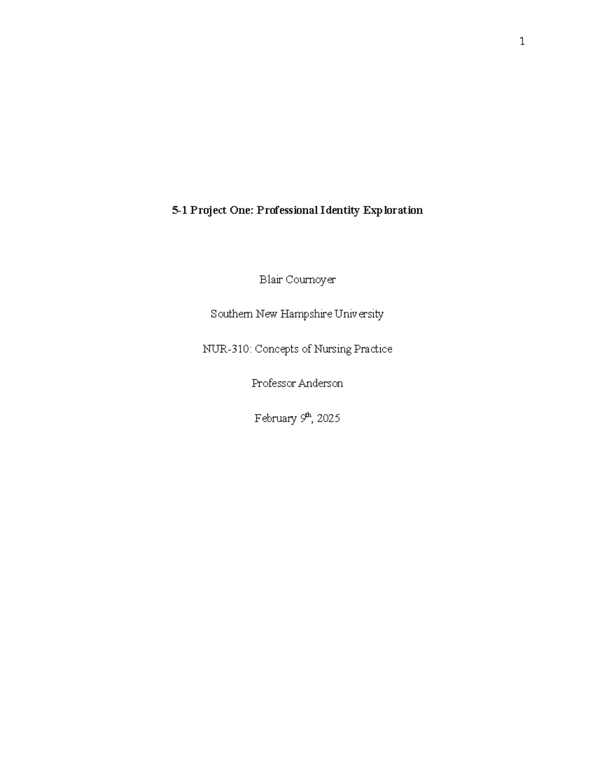 NUR-310 Final Exam: Professional Identity Exploration Project - Studocu
