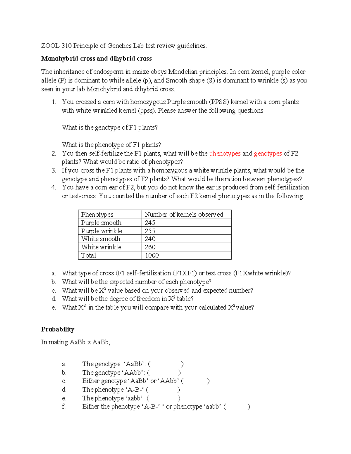 Genetics Lab Review: ZOOL 310 Final Exam Prep Guide - Studocu
