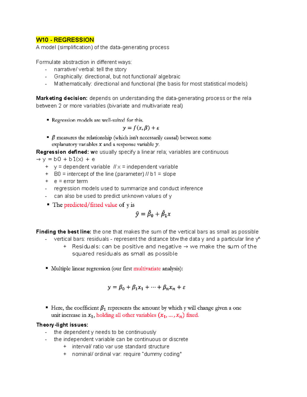[ MKMR 310 ] Final Exam note - W10 - REGRESSION A model (simplification ...