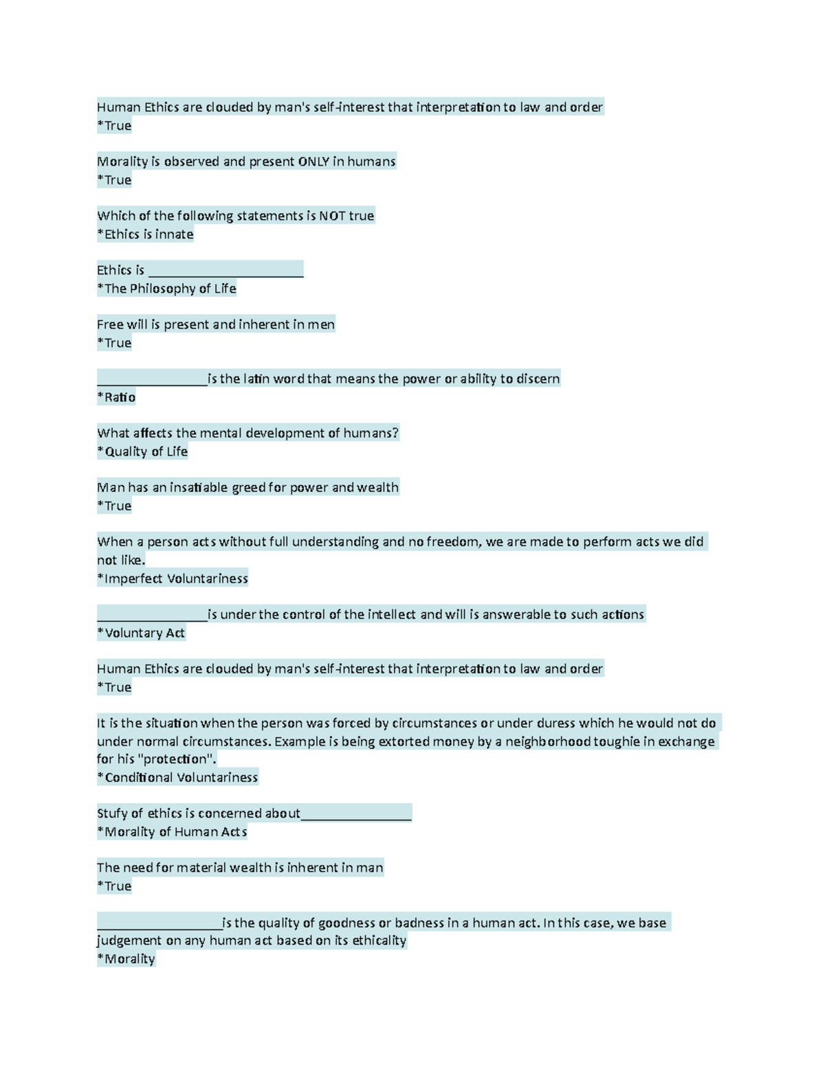 1st Year Ethics Final Exam Review Notes: Key Concepts Explained - Studocu