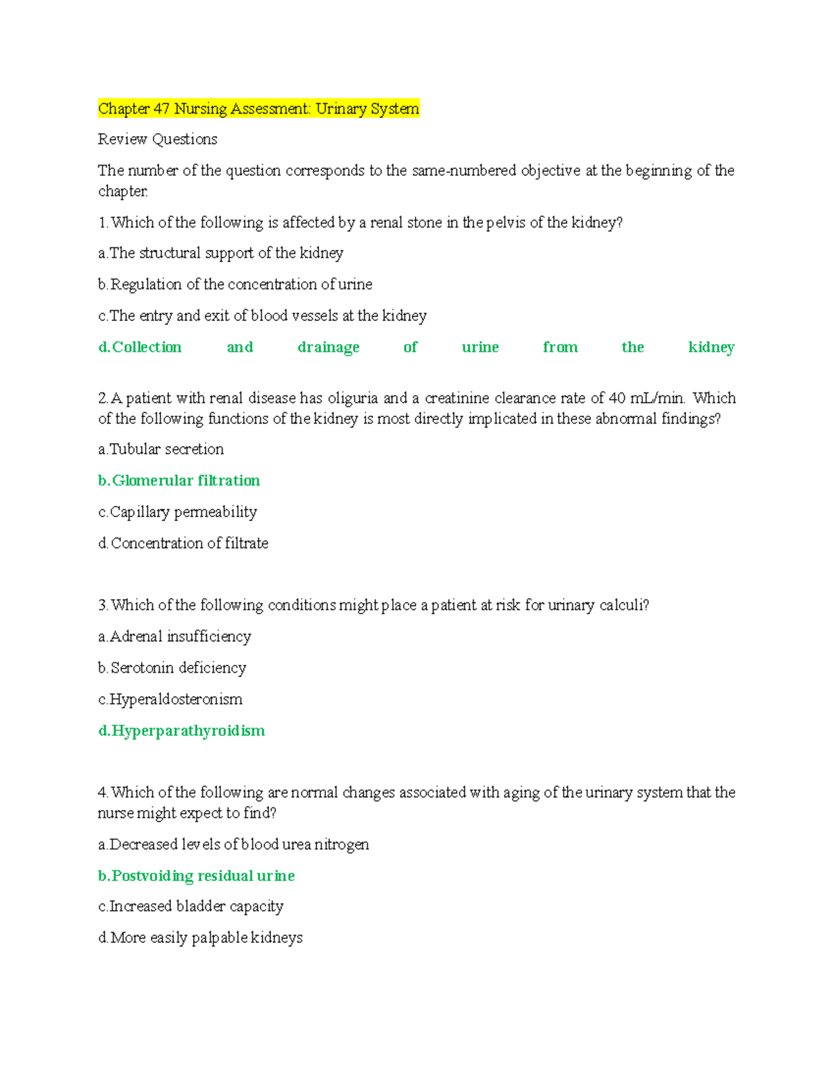 NUR 310 Final Exam Review Questions: Urinary System Insights - Studocu