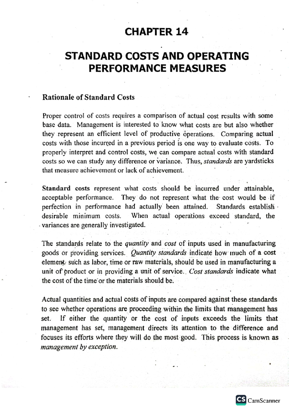CS 310 Final Exam: Chapter 14 - Standard Costs & Performance Measures ...
