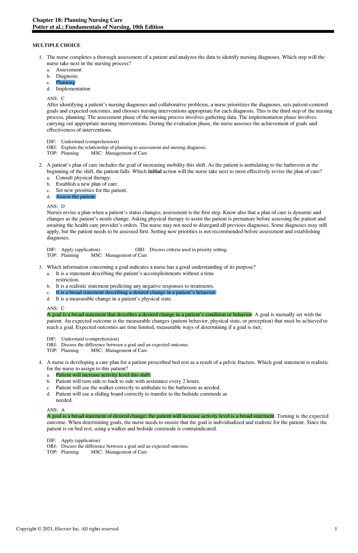 NUR 310 Final Exam Notes: Chapter 18 - Planning Nursing Care - Studocu