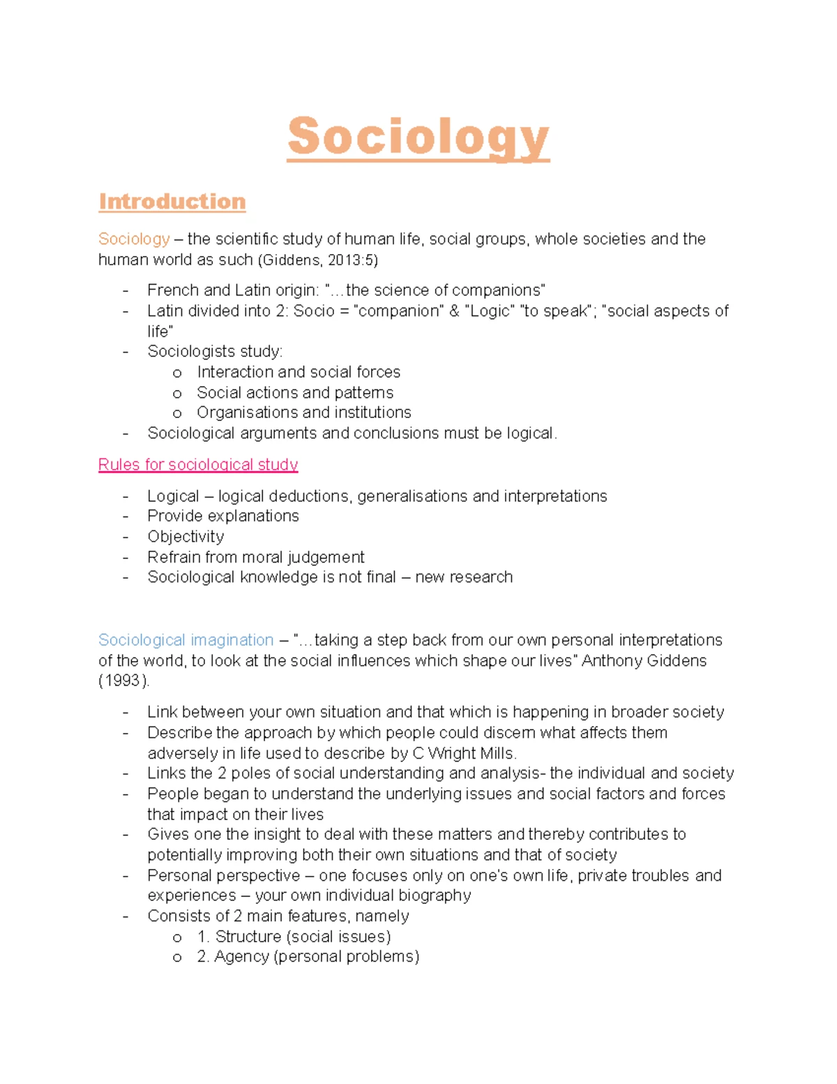 SOCY 111 - Comprehensive Sociology Study Notes & Insights - Studocu
